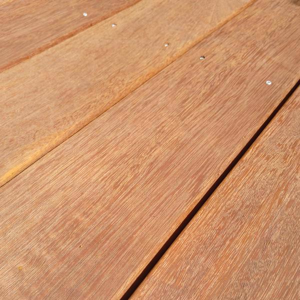 Angelim wood decking excels at durability, offering an incredibly dense and hard-wearing structure that naturally resists insects, fungi, and the harshest weather conditions. This resilience means that your decking will maintain its integrity and beauty for years, even under heavy foot traffic and exposure to the elements.