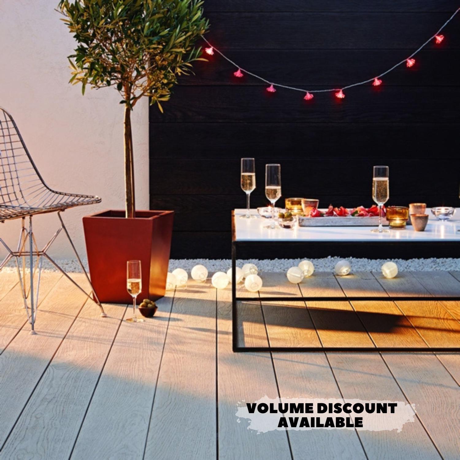 Whether you are looking to make a difference in your garden or rethink an existing patio or terrace, our oak timber decking’s natural honey tones provide a warm and inviting aesthetic that blends seamlessly with any outdoor setting.