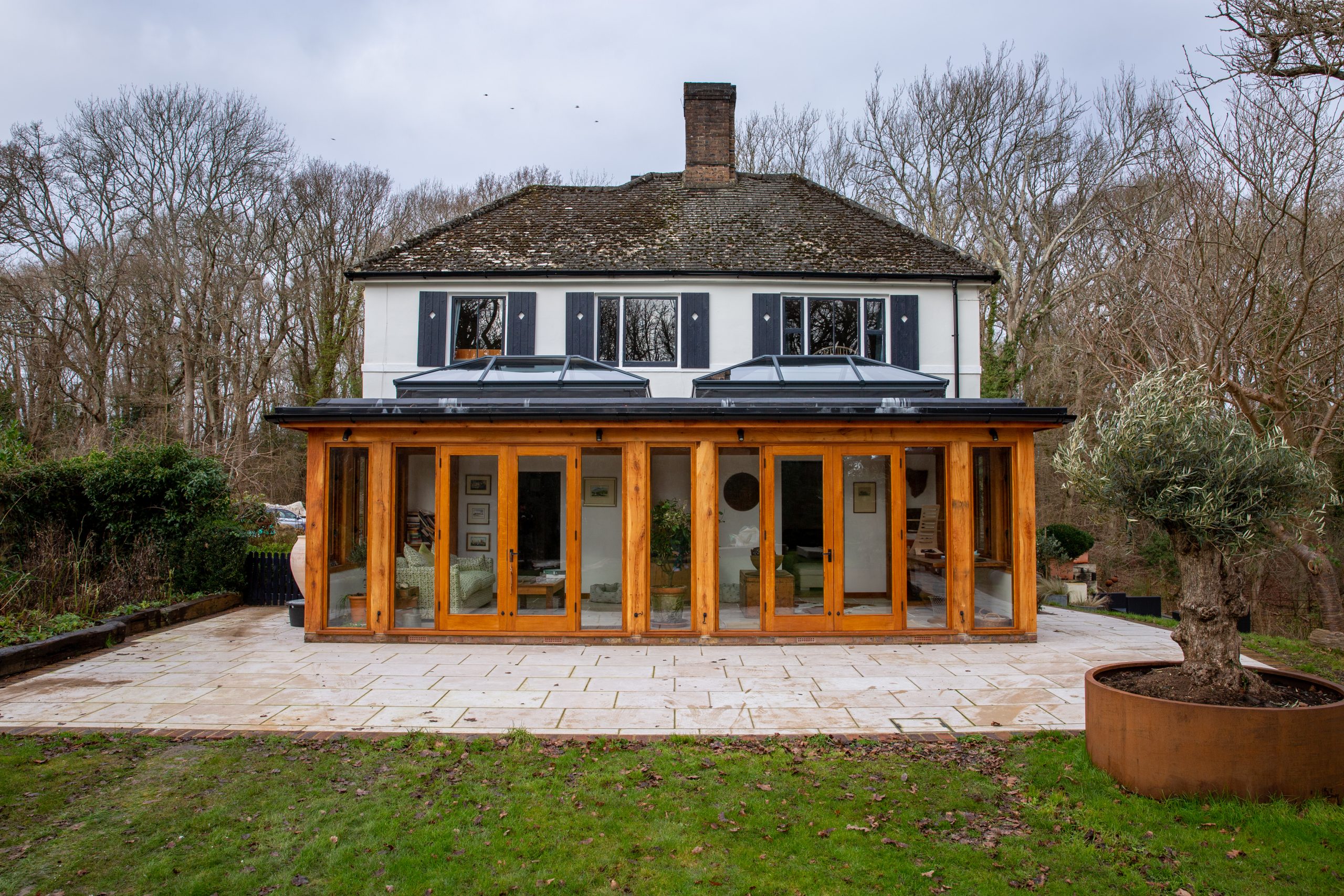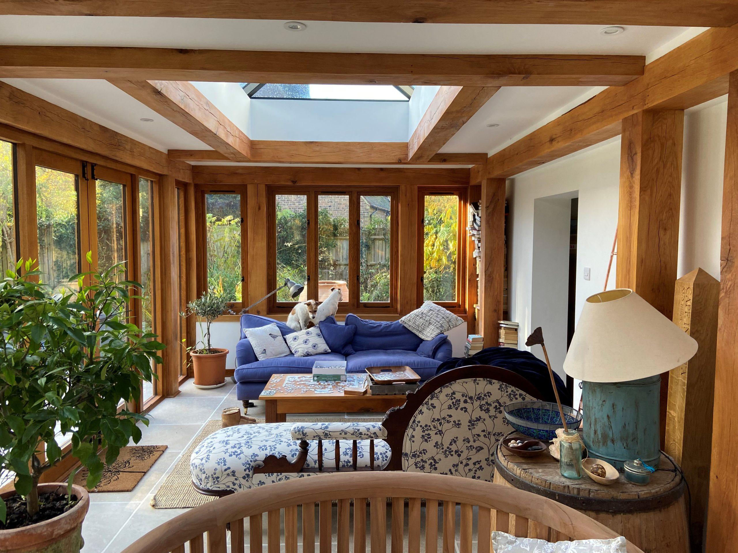 Our extensions are built from structural green oak using mortise and tenon joints for a solid, reliable frame. Each structure is dry-fitted in our Sussex workshop to confirm accuracy before delivery. Where a design includes wide openings or complex roof junctions, additional supports are incorporated at the framing stage.Â