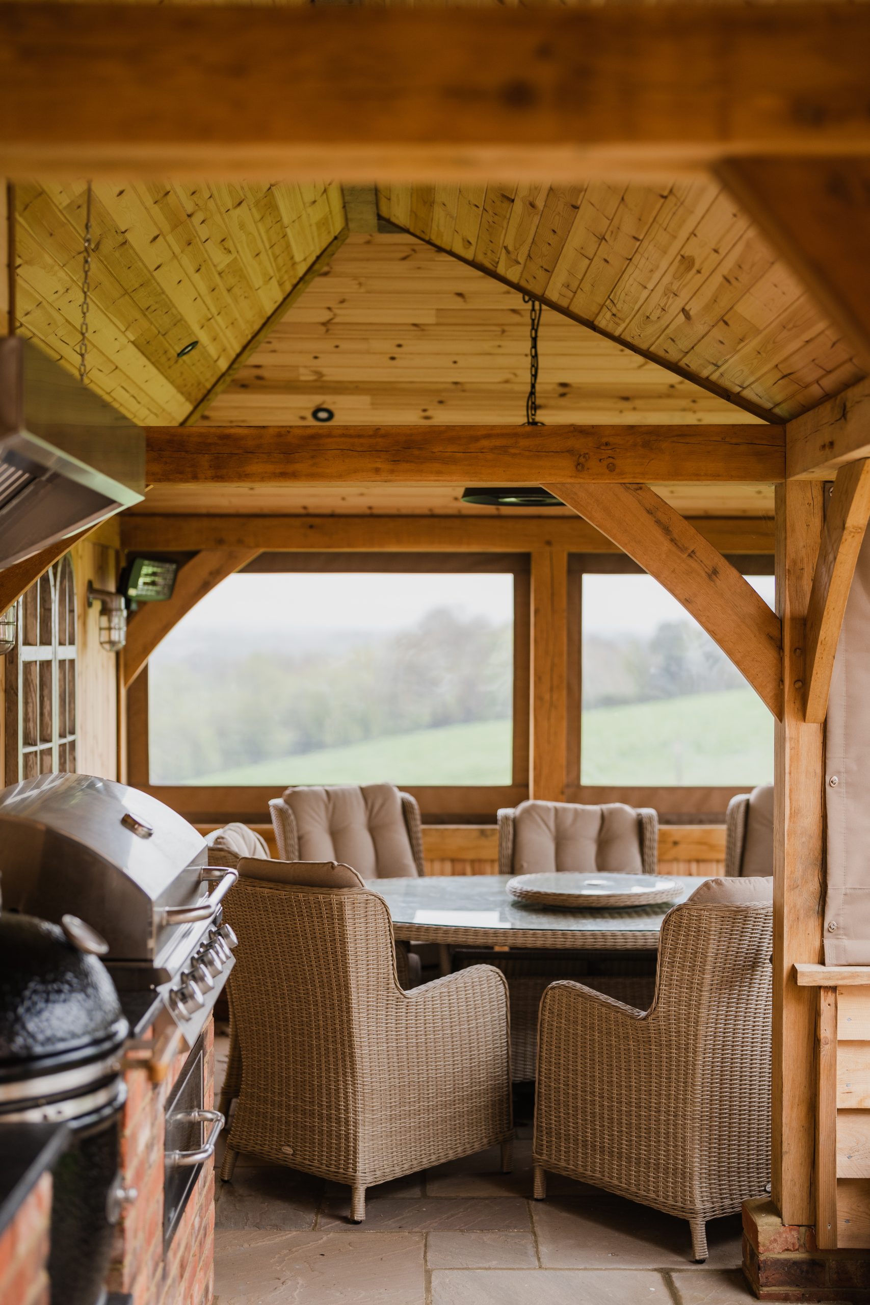 An oak garden structure creates a defined outdoor space that can be used in most weather – whether for seating, dining, or cooking. The strength and stability of structural oak make these builds long-lasting and reliable, with a natural presence that settles well into landscaped or rural settings.Â
